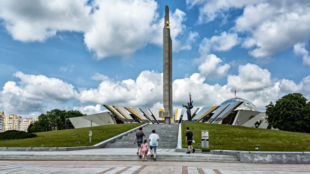 - Der Minsk Heldenstadt Obelisk (45 m hoch), der seit 1985 neben dem Museum steht, erinnert an die Auszeichnung Minsks als „Heldenstadt“; er bildet zusammen mit der symbolträchtigen Bauweise ein beeindruckendes Ensemble.